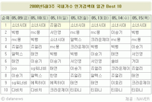 From Naver<3rd Week of May 2008, Artiste Popular Search Ranking(2008,09/05-15/05)>