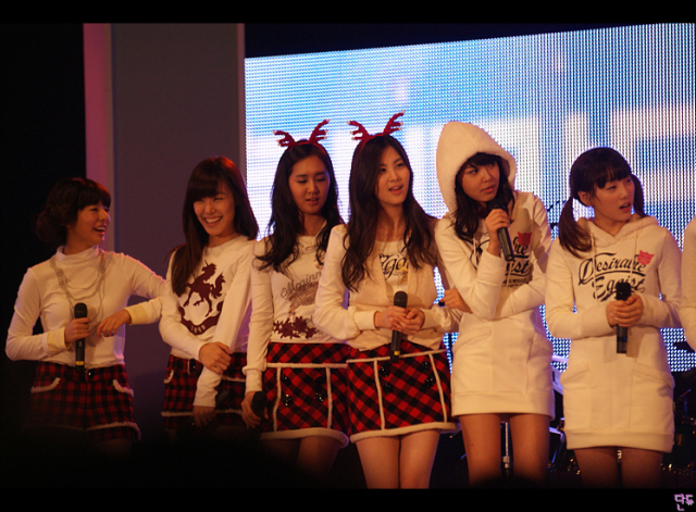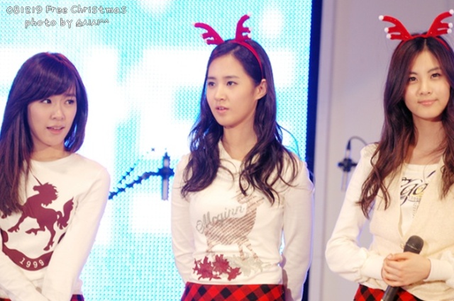 Wow…Maknae’s beauty is just, well no words can describe. I swear, she gets more and more beautiful by the second! Damn. Tae ❤ She looks mad cute in that hair style and Tiff is lookin gorgeous with the long hair yet freakin adorable at the same time with her smile. They all look so cute with those antlers..and Sooyoung needs to shrink a bit :[ Im jealous of that height!
