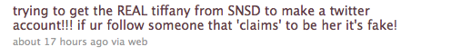 (Should get bigger once you click on it!) Many of you could probably care less if she gets a twitter but some, like me, who follow a great deal of celebrities on it might just crap their pants if they find the real Fany tweeting away with fans. 😛 Can you imagine the amount of English that would be given to us?! <33