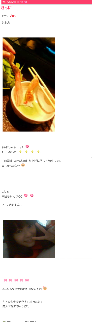 4. Arihara Kanna (16 years old former member of C-ute with Umeda Erika) posted,