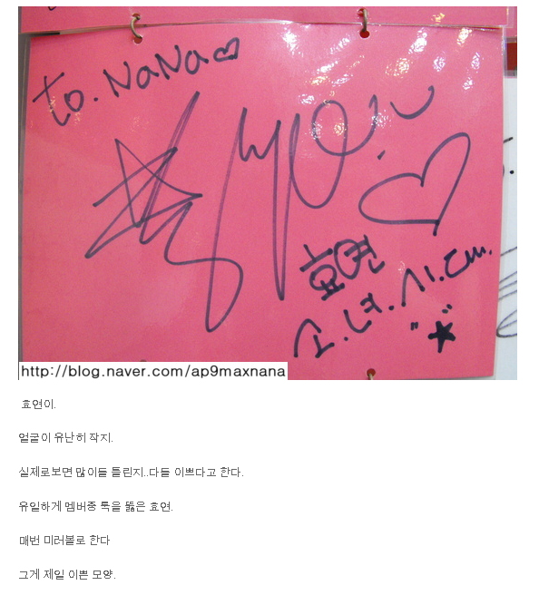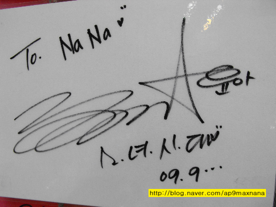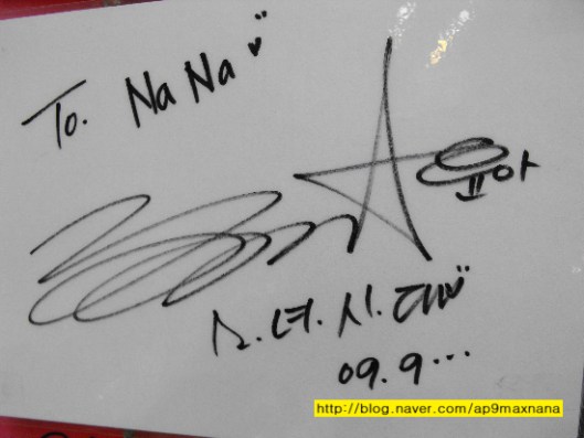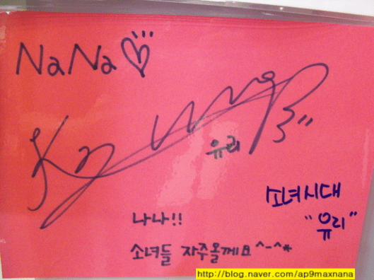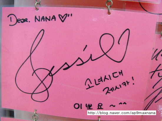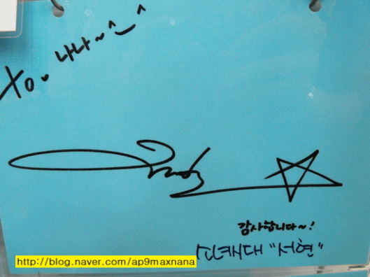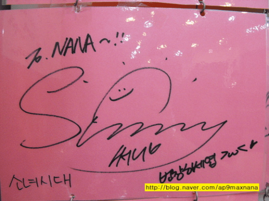 i realise they are sweet to write … SNSD w their autograph !!! JJANG !!