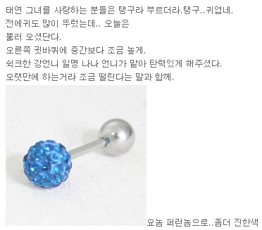 i always have a fear of getting pierce for some reason…but taengoo has like a lot of her ear lobes pierce, lol!