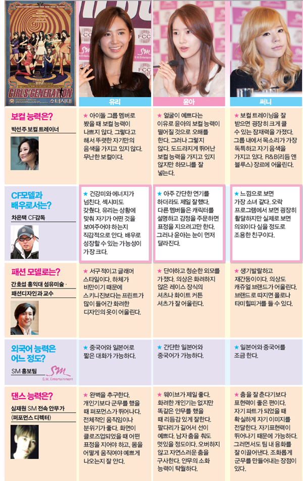 [Trans of Sisa Journal critics pov of Taeyeon, Tiffany, Jessica, Seohyun, Hyoyeon and Sooyoung.]