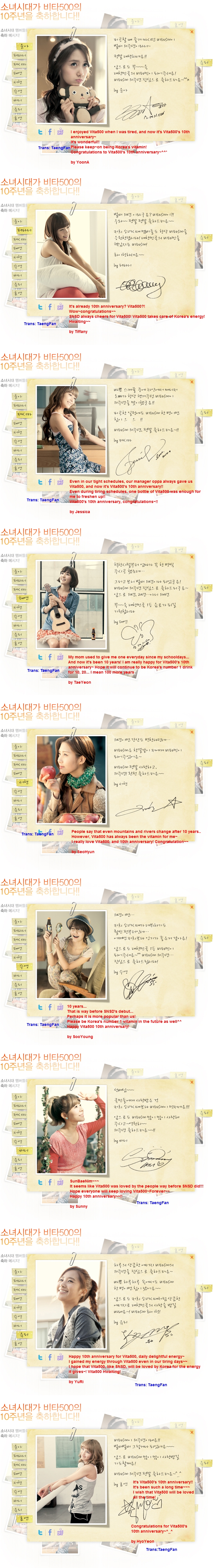 … And to celebrate it’s 10th Anniversary, SNSD have posted congratulatory messages, complete with their beautiful signatures, on the energy beverages’ official website: