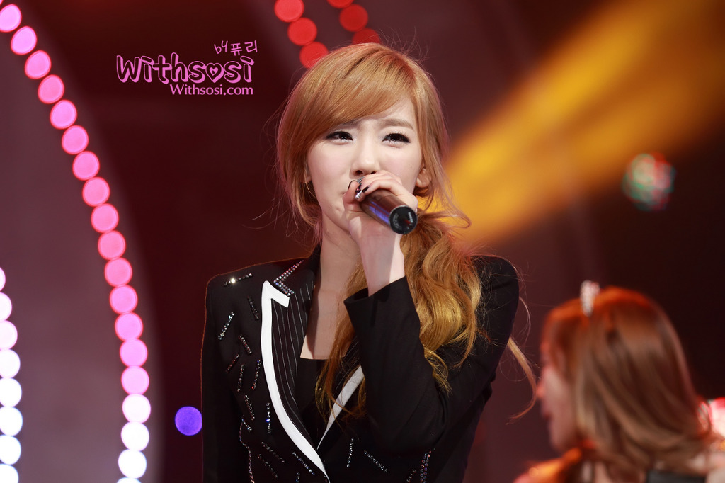 You might have noticed that Yoona was not present for today’s show, most likely due to other commitments, but Tiffany was able to step in during her parts, and the eight members there still performed faultlessly (the stage looked a little incomplete is all D:). Regardless, the girls didn’t forget about Yoona, giving her a shoutout and excitedly announcing that they won during the acceptance speech.