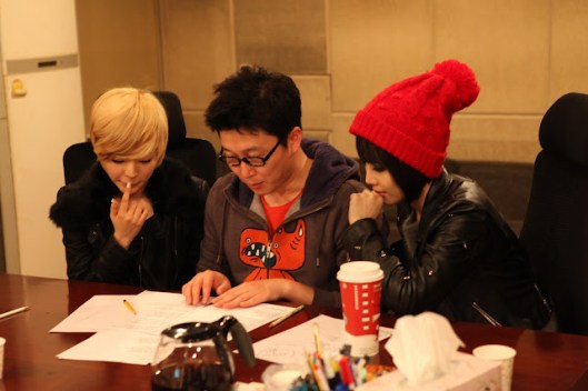 Some pictures also surfaced of Sunny, Miryo, and their composer when they were writing the song. Always nice to see the ladies working hard for us!