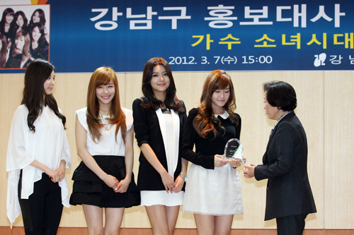 On March 7th, SNSD was appointed honorary ambassadors for the southeastern Seoul district of Gangnam. Present at the ceremony were, Seohyun, Tiffany, Sooyoung and Jessica. I hear from staffer MAEniac, that this district is like Seoul’s Seoul, meaning there is super prestige in this award! Congrats to our ladies on another outstanding achievement! Pictures under the cut, a lot of them :P.
