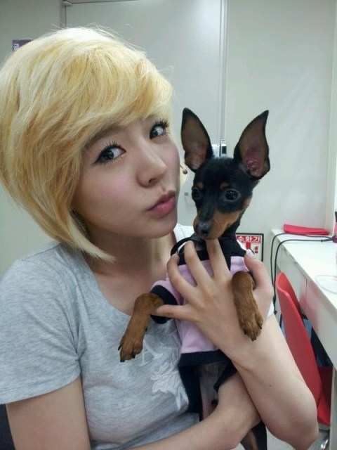 Sunny Bunny took a selca while posing with a puppy! The Miniature Pinscher belongs to her “Catch Me If You Can” co-star, Choi Woo Ri.