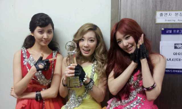 Following their previous 2 wins on music shows, here comes TaeTiSeo’s first win on KBS’ ‘Music Bank’! So what makes this more exciting that it already is?? Well, today’s stage, the Trio has a newer, more sexier, more twinkling outfits! And to top that cherry on TaeTiSeo’s cake, SNSD’s YoonA appeared on stage to show her loving support and joined them during the announcement and their encore stage!