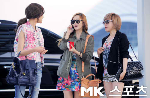 Only a few days left for SMTown’s World Tour III in LA, our SMTown family heads to L.A (SO JELLY OF THOSE WITH TICKETS AND MONIES). The first members to be leaving first are SooYoung, Jessica and Sunny! With top notch beauty, high class airport fashion and even NEW hairstyles, check out their arrivals to the airport below!