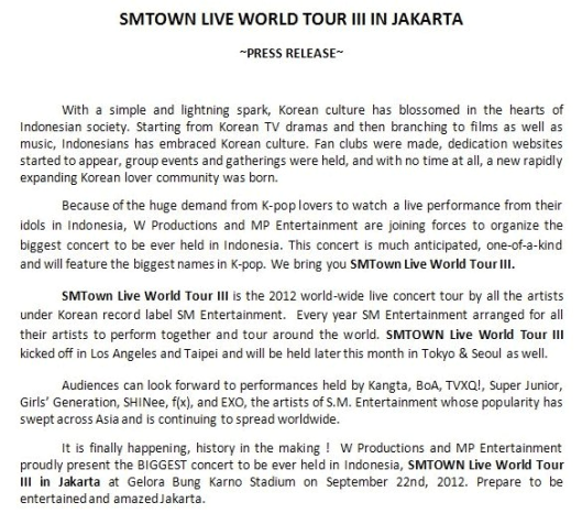 finally it’s here, SMTown World Tour III in Jakarta, Indonesia which taken place at Gelora Bung Karno Stadium on September 22nd, 2012.