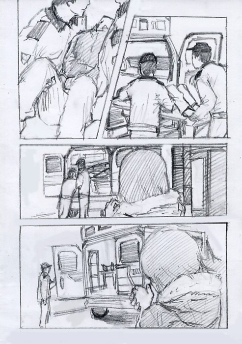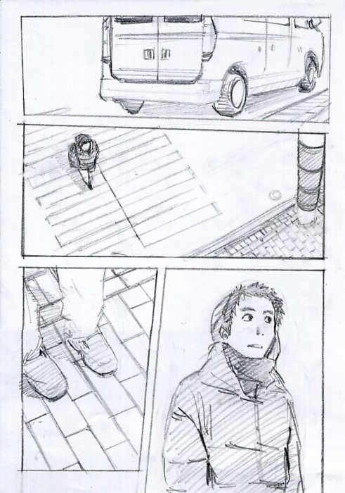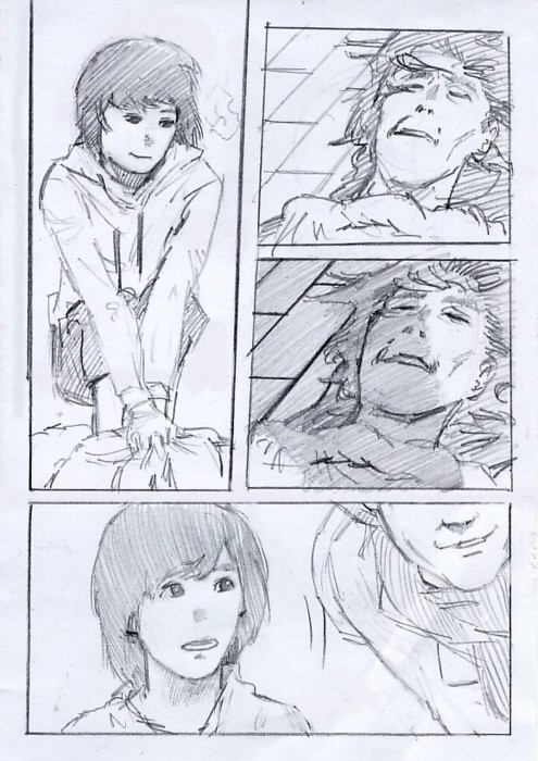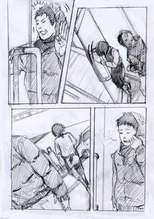 The final panel of this amazing set of drawings shows the artist looking into the distance, no doubt wondering who this “earthly angel” was whom he had just encountered. Be that as it may, the incident so affected him that he actually deigned it fit to document it in a graphic format.