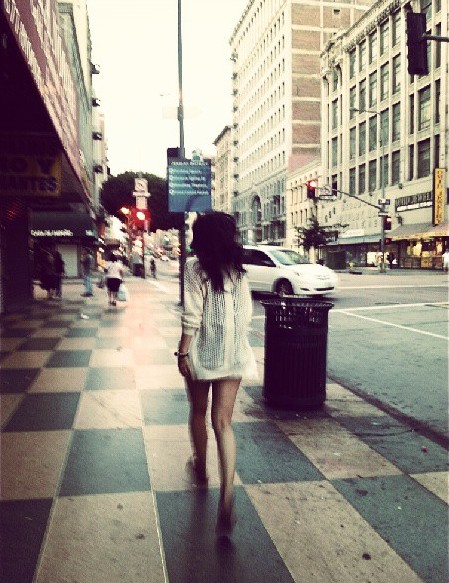 “in front of TOPSHOP at the grove ; ) clothes and shoes,