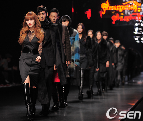 Earlier today, our Ice Princess took over the runway at the F/W Seoul Fashion Week show, modeling clothes for one of it’s popular Korean fashion designers’ Lee Juyoung, and her new fashion line, “Resurrection.”